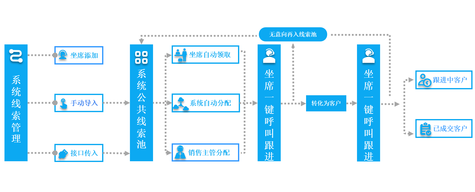 2.?坐席對客戶線索進行初次溝通篩選,通過系統一鍵呼叫功能發起外呼聯系客戶